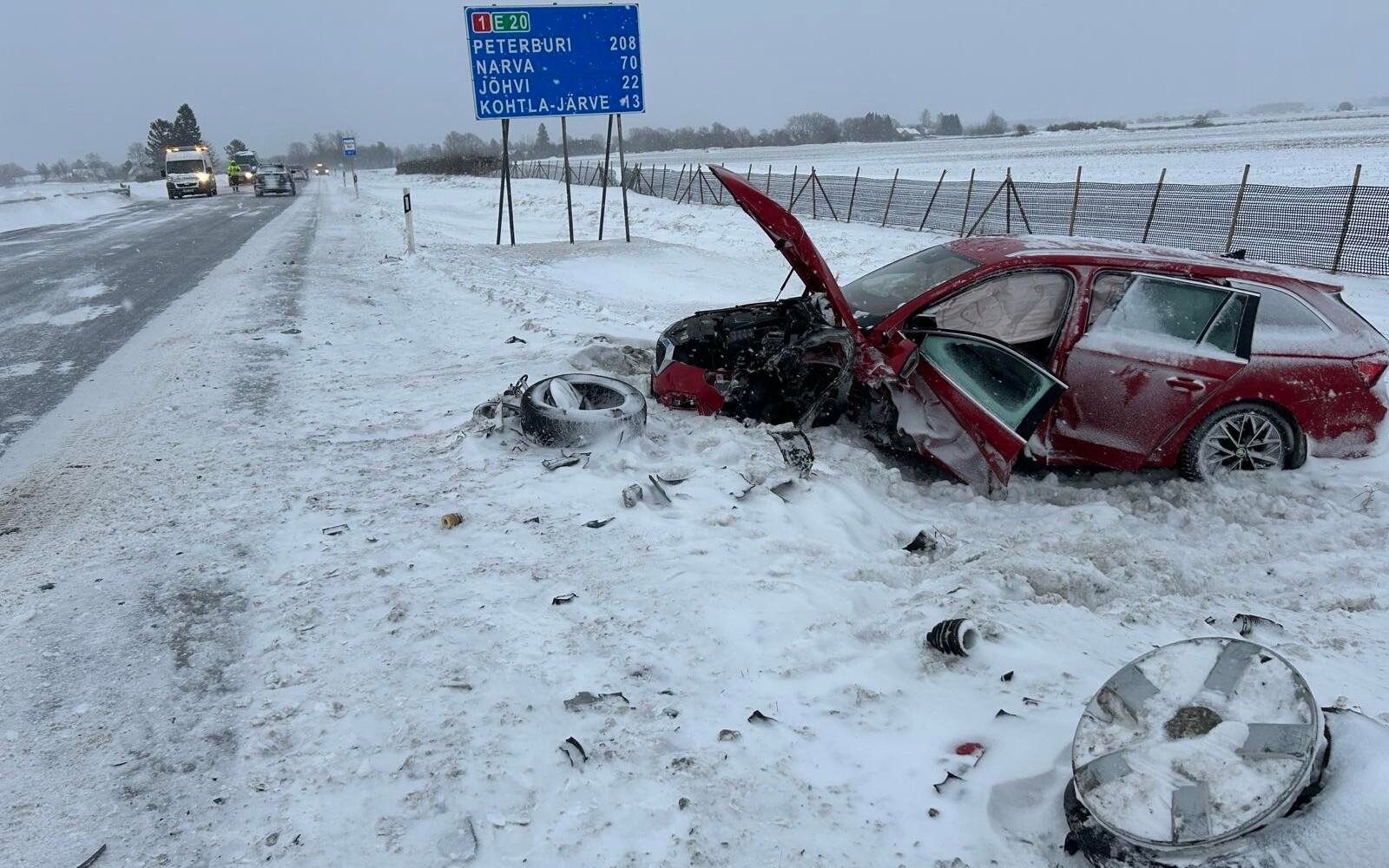 68 A car involved in an accident on the Tallinn-St. Petersburg highway in Varja on Saturday Source: Rene Kundla/ERR